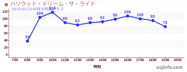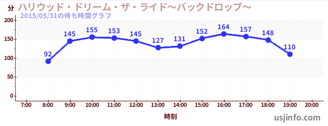 • ハリウッド・ドリーム・ザ・ライド〜バックドロップ〜$B$N(B2015年05月31日の待ち時間