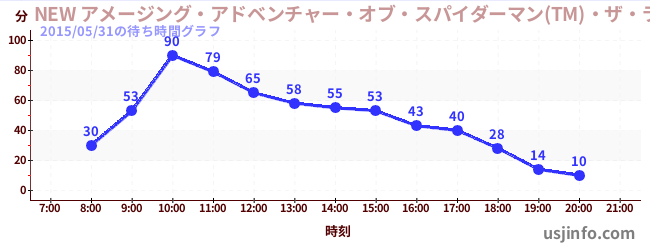 • NEW アメージング・アドベンチャー・オブ・スパイダーマン(TM)・ザ・ライド 4K3D$B$N(B2015年05月31日の待ち時間