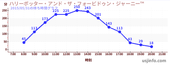 • ハリーポッター・アンド・ザ・フォービドゥン・ジャーニー™$B$N(B2015年05月31日の待ち時間