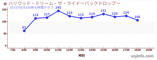 • ハリウッド・ドリーム・ザ・ライド〜バックドロップ〜$B$N(B2015年06月01日の待ち時間