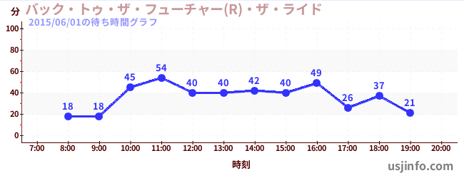 • バック・トゥ・ザ・フューチャー(R)・ザ・ライド$B$N(B2015年06月01日の待ち時間