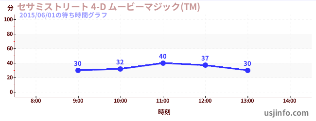 • セサミストリート 4-D ムービーマジック(TM)$B$N(B2015年06月01日の待ち時間