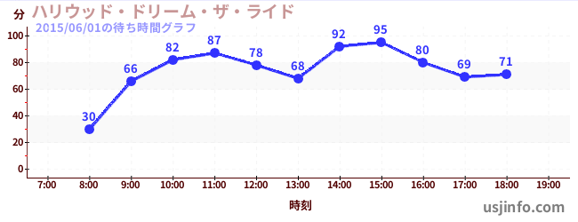 • ハリウッド・ドリーム・ザ・ライド$B$N(B2015年06月01日の待ち時間