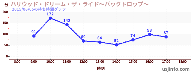 • ハリウッド・ドリーム・ザ・ライド〜バックドロップ〜$B$N(B2015年06月05日の待ち時間