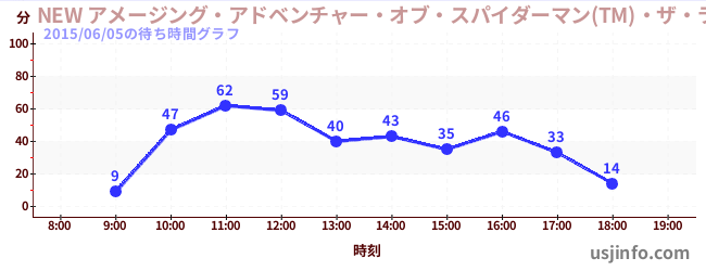 • NEW アメージング・アドベンチャー・オブ・スパイダーマン(TM)・ザ・ライド 4K3D$B$N(B2015年06月05日の待ち時間