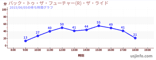 • バック・トゥ・ザ・フューチャー(R)・ザ・ライド$B$N(B2015年06月05日の待ち時間