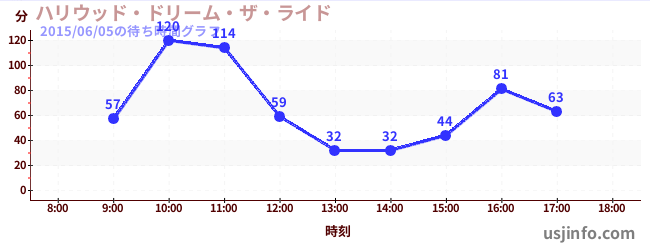 • ハリウッド・ドリーム・ザ・ライド$B$N(B2015年06月05日の待ち時間