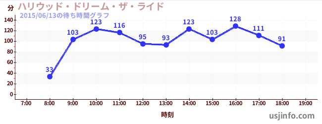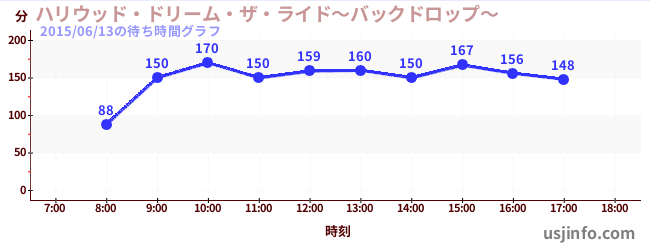 • ハリウッド・ドリーム・ザ・ライド〜バックドロップ〜$B$N(B2015年06月13日の待ち時間