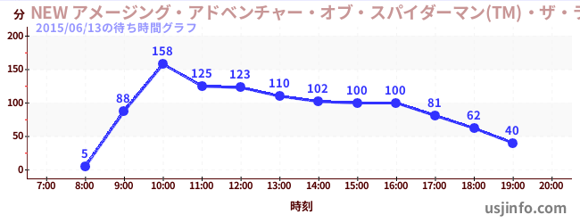 • NEW アメージング・アドベンチャー・オブ・スパイダーマン(TM)・ザ・ライド 4K3D$B$N(B2015年06月13日の待ち時間