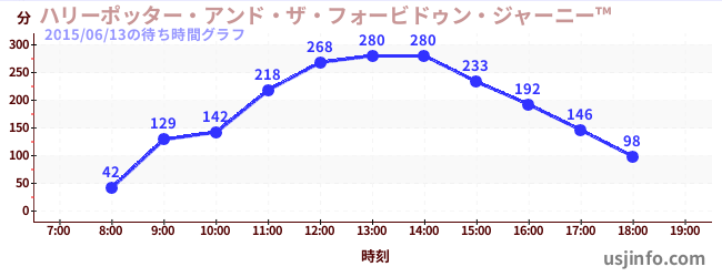 • ハリーポッター・アンド・ザ・フォービドゥン・ジャーニー™$B$N(B2015年06月13日の待ち時間