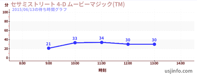 • セサミストリート 4-D ムービーマジック(TM)$B$N(B2015年06月13日の待ち時間