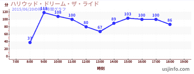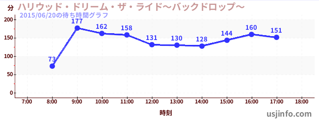 • ハリウッド・ドリーム・ザ・ライド〜バックドロップ〜$B$N(B2015年06月20日の待ち時間