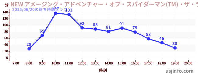 • NEW アメージング・アドベンチャー・オブ・スパイダーマン(TM)・ザ・ライド 4K3D$B$N(B2015年06月20日の待ち時間