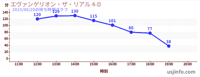 • エヴァンゲリオン・ザ・リアル 4-D$B$N(B2015年06月20日の待ち時間