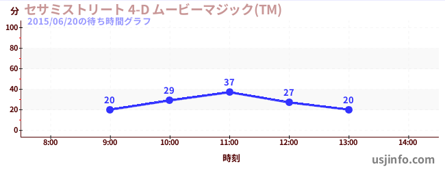 • セサミストリート 4-D ムービーマジック(TM)$B$N(B2015年06月20日の待ち時間