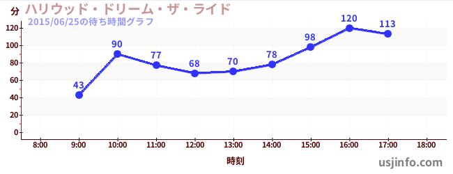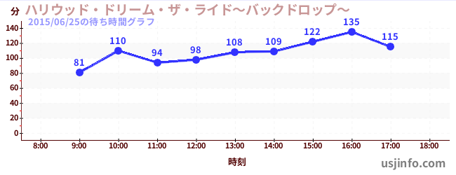 • ハリウッド・ドリーム・ザ・ライド〜バックドロップ〜$B$N(B2015年06月25日の待ち時間