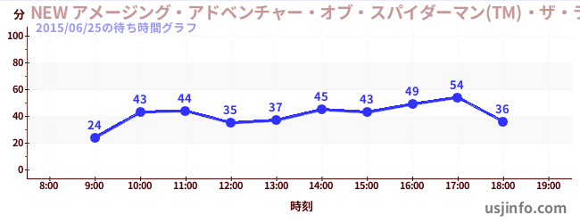 • NEW アメージング・アドベンチャー・オブ・スパイダーマン(TM)・ザ・ライド 4K3D$B$N(B2015年06月25日の待ち時間