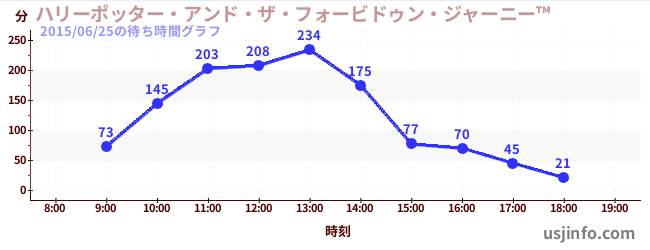 • ハリーポッター・アンド・ザ・フォービドゥン・ジャーニー™$B$N(B2015年06月25日の待ち時間