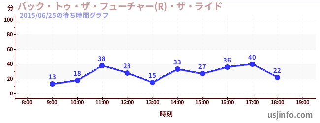 • バック・トゥ・ザ・フューチャー(R)・ザ・ライド$B$N(B2015年06月25日の待ち時間