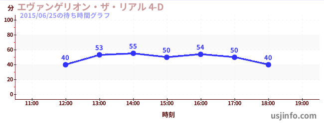 • エヴァンゲリオン・ザ・リアル 4-D$B$N(B2015年06月25日の待ち時間