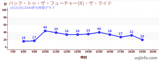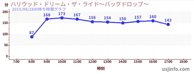 • ハリウッド・ドリーム・ザ・ライド〜バックドロップ〜$B$N(B2015年06月28日の待ち時間