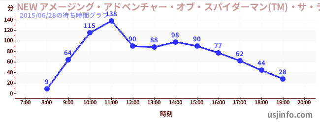 • NEW アメージング・アドベンチャー・オブ・スパイダーマン(TM)・ザ・ライド 4K3D$B$N(B2015年06月28日の待ち時間