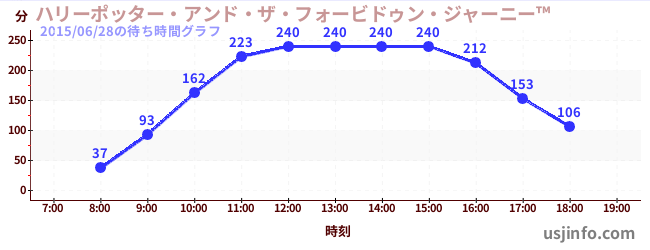 • ハリーポッター・アンド・ザ・フォービドゥン・ジャーニー™$B$N(B2015年06月28日の待ち時間