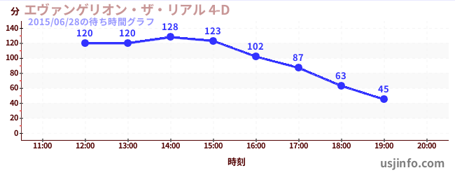 • エヴァンゲリオン・ザ・リアル 4-D$B$N(B2015年06月28日の待ち時間