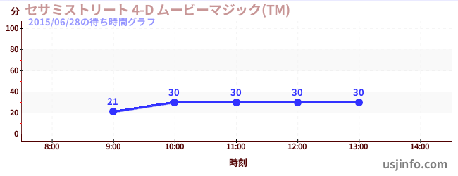 • セサミストリート 4-D ムービーマジック(TM)$B$N(B2015年06月28日の待ち時間