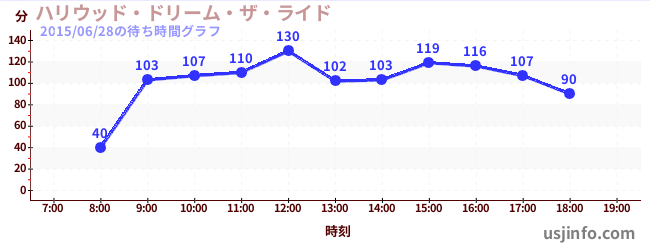 • ハリウッド・ドリーム・ザ・ライド$B$N(B2015年06月28日の待ち時間