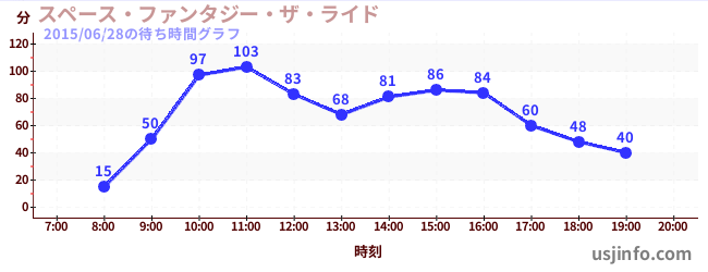 • スペース・ファンタジー・ザ・ライド$B$N(B2015年06月28日の待ち時間