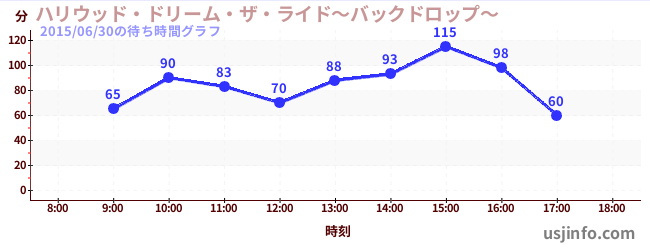 • ハリウッド・ドリーム・ザ・ライド〜バックドロップ〜$B$N(B2015年06月30日の待ち時間