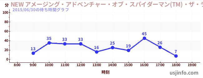 • NEW アメージング・アドベンチャー・オブ・スパイダーマン(TM)・ザ・ライド 4K3D$B$N(B2015年06月30日の待ち時間