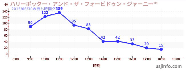 • ハリーポッター・アンド・ザ・フォービドゥン・ジャーニー™$B$N(B2015年06月30日の待ち時間