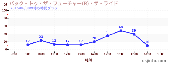 • バック・トゥ・ザ・フューチャー(R)・ザ・ライド$B$N(B2015年06月30日の待ち時間