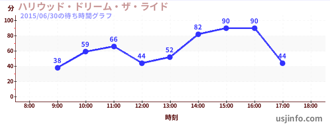 • ハリウッド・ドリーム・ザ・ライド$B$N(B2015年06月30日の待ち時間
