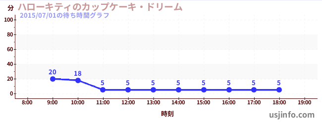 • ハローキティのカップケーキ・ドリーム$B$N(B2015年07月01日の待ち時間