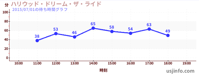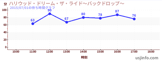 • ハリウッド・ドリーム・ザ・ライド〜バックドロップ〜$B$N(B2015年07月01日の待ち時間