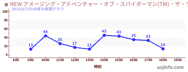 • NEW アメージング・アドベンチャー・オブ・スパイダーマン(TM)・ザ・ライド 4K3D$B$N(B2015年07月01日の待ち時間