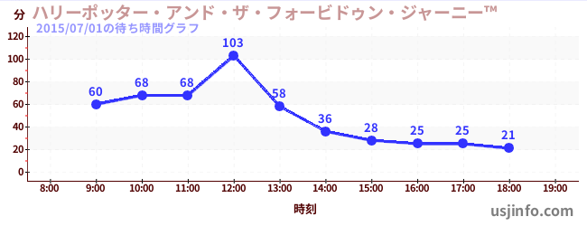 • ハリーポッター・アンド・ザ・フォービドゥン・ジャーニー™$B$N(B2015年07月01日の待ち時間