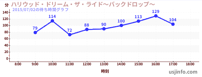 • ハリウッド・ドリーム・ザ・ライド〜バックドロップ〜$B$N(B2015年07月02日の待ち時間