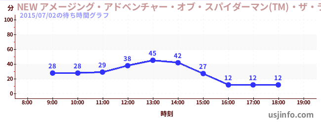 • NEW アメージング・アドベンチャー・オブ・スパイダーマン(TM)・ザ・ライド 4K3D$B$N(B2015年07月02日の待ち時間