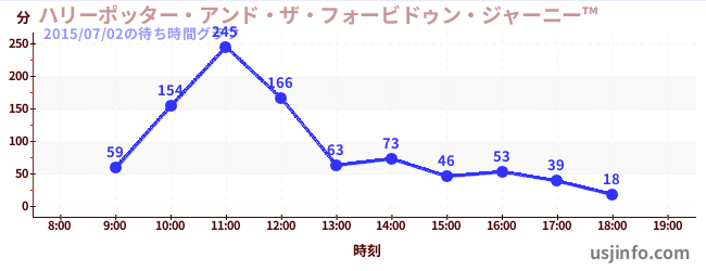 • ハリーポッター・アンド・ザ・フォービドゥン・ジャーニー™$B$N(B2015年07月02日の待ち時間
