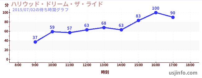 • ハリウッド・ドリーム・ザ・ライド$B$N(B2015年07月02日の待ち時間