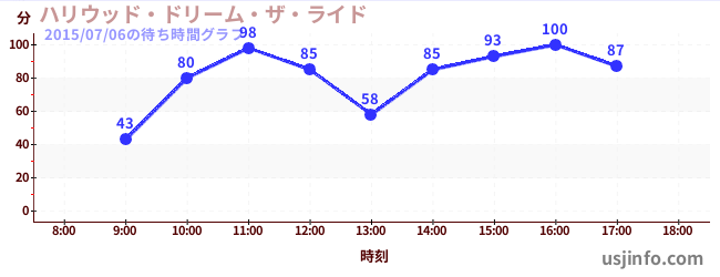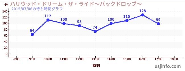 • ハリウッド・ドリーム・ザ・ライド〜バックドロップ〜$B$N(B2015年07月06日の待ち時間