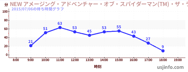 • NEW アメージング・アドベンチャー・オブ・スパイダーマン(TM)・ザ・ライド 4K3D$B$N(B2015年07月06日の待ち時間