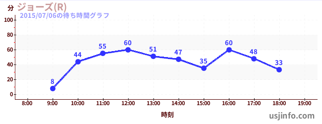 • ジョーズ(R)$B$N(B2015年07月06日の待ち時間