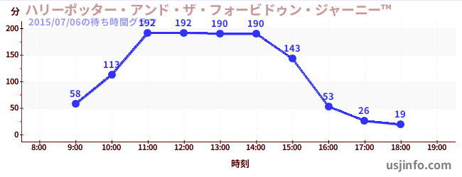 • ハリーポッター・アンド・ザ・フォービドゥン・ジャーニー™$B$N(B2015年07月06日の待ち時間