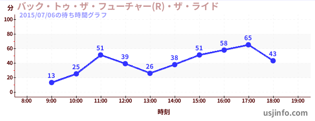 • バック・トゥ・ザ・フューチャー(R)・ザ・ライド$B$N(B2015年07月06日の待ち時間