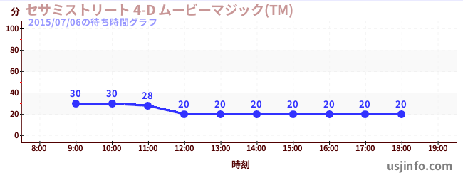• セサミストリート 4-D ムービーマジック(TM)$B$N(B2015年07月06日の待ち時間